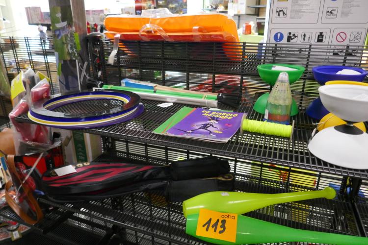 5 diabolo - 7 boekjes - 8ringer - flowerstick -3 bellenblaasstokken - 2 kegels -bubble machine - 2 badmintonset - shutters