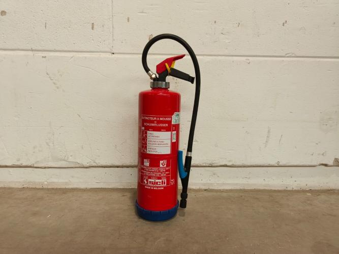 Merk: Sicli, Type: Aqua 9M5, BENOR-label aanwezig, bouwjaar variërend 2012-2018, laatste keuring 2024, alle brandblussers zijn nog verzegeld, diameter 200mm, hoogte 650mm