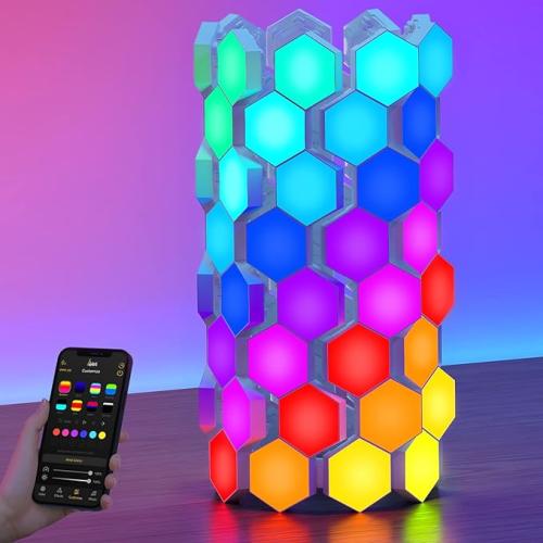 Ongeopend, Syro-Bricks 3D Hexagon Lights, Smart App Control, RGB Hexagon LED Lights voor Muur of Bureau met Muzieksynchronisatie voor Gaming Room Streaming Decoratie (72 stuks), B0BNB91Q26