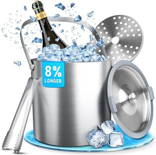 Ongeopend, ok, licht beschadigde verpakking, 3L ijsemmer met siliconen deksel, IJstang en zeef. Houdt ijs langer bevroren - Ideaal voor feesten, cocktailbars, koele wijn, champagne, B0C4L8MWLY