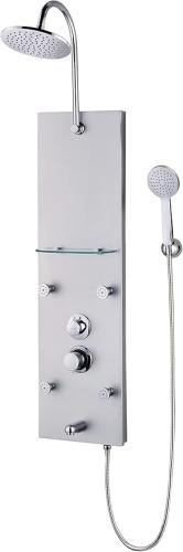 Ongebruikt, volledig, ok, Edouard Rousseau - Douchekolom met hydromassage Fatae 2 - Antikalk-noppen, 4 massageuitgangen, baduitloop, glazen plank - flexibel 1,50 m - aluminium, B09CGZDLLD
