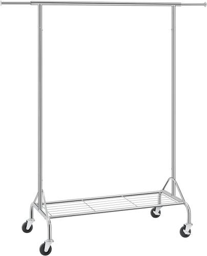 Ongebruikt, volledig, ok, SONGMICS Kledingrek van metaal, zware belasting, met schoenenrek, op wielen, tot 50 kg belastbaar, lengte 110,5-150,5 cm, verchroomd, HSR02S, B015MTS5XC