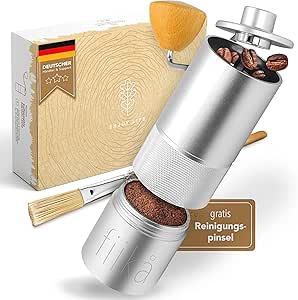 Ongeopend, ok, Fiika Handmatige koffiemolen met roestvrijstalen molen en afneembaar houten handvat, nauwkeurige maalgraadinstelling, plasticvrije espressomoei met kegelmolen en reinigingsborstel + boekje, B0BBZRTWYB