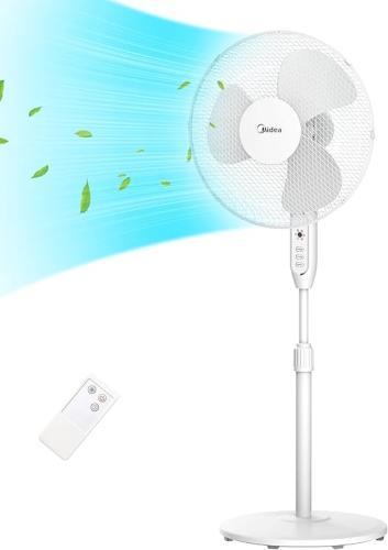 Gebruikssporen, getest en werkend, ok, beschadigde verpakking, Midea MFS400M0APW0 Staande ventilator, 40 W, in hoogte verstelbaar, stille ventilator met afstandsbediening, 3 snelheden, oscillatie 85 graden, hoogte verstelbaar van 1,1 tot 1,3 meter, kleur wit, B0CPSPS4RN
