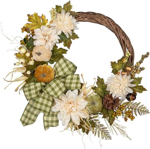 Ongeopend, in seal, Herfstdeurkrans (61 cm) kunstmatige pompoenkrans herfstkrans met fluwelen pompoen, dahlia en strik, herfstkrans voor Halloween, Thanksgiving-krans-ideeën voor je huisdeur, binnen- en buitendecoratie, B0CRB7NZT4