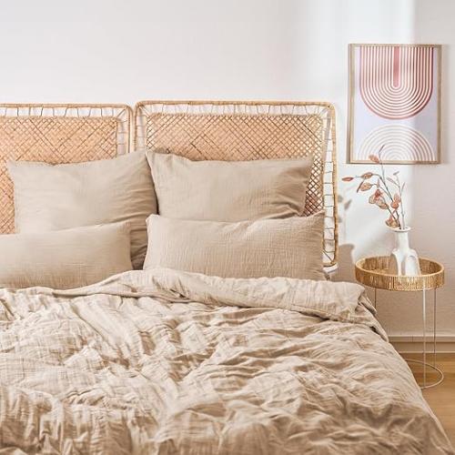 Ongebruikt, volledig, ok, Blumtal bedlinnen mousseline( 200x220 cm) - OEKO-TEX gecertificeerd bedlinnen 200x220 katoen - dekbedovertrek 200x220 + 2x kussensloop 40x80 - bedlinnen 200x220 mousseline - bedlinnen zomer taupe, B0D6Z4TRH7