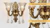 Ongebruikt, getest en werkend, ok, WayLuoung Vintage Bloemen Wandmontage Lamp, 2 Kop Kristallen Glazen Kap Wandkandelaar Licht Retro Gouden Brons Kleur Decoratie Metalen Wandlamp, Nachtkastje Woonkamer Restaurant (E14 Basis Geen Lamp) [Energieklasse A],B0D4QJCMH3