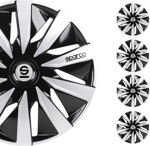 Ongebruikt, ok, licht beschadigde verpakking, SPARCO Wieldoppenset SPC1691BKSV Lazio decoratieve wielers, 16 inch, zwart/zilver, B01NCN028O