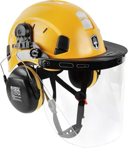 Ongebruikt, ok, licht beschadigde verpakking, GREEN DEVIL Kettingzaag veiligheidshelm bosbouwveiligheidshelm veiligheidshelm met gehoorbescherming oorbeschermers en gezichtsbescherming vizier 3-in-1 helmset slagvast comfortabele ventilatie, B0B8HMND9N