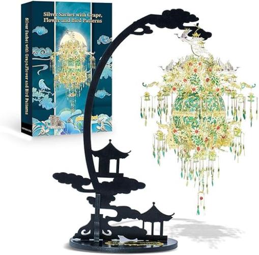 Ongeopend, in seal, Piececool 3D puzzel voor volwassenen - zilveren zak met druiven-, bloemen- en vogelpatronen DIY 3D-metalen modelbouwset voor volwassenen, 14+, B0912CGKFL