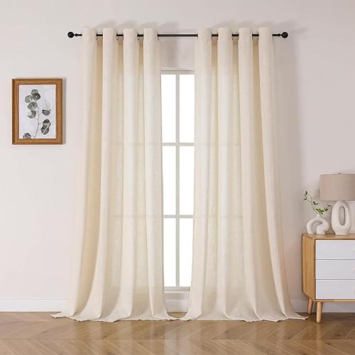 Ongeopend, Joydeco Linnen gordijnen met inslagringen, natuurlijk linnen (bevat echt linnen), 225 x 132 cm (h x b), 2 stuks, voor woonkamer, slaapkamer, doorschijnende gordijnen, B0D3FXG3NB