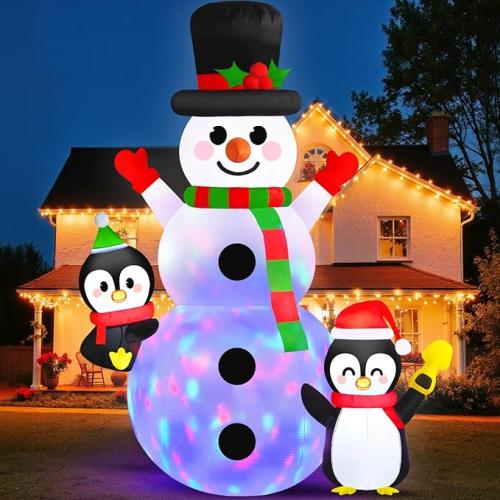 Ongebruikt, getest en werkend, volledig, ok, Danxilu Opblaasbare kerstdecoratie (6FT, 183 cm), sneeuwpop, opblaasbaar met pinguïns, roterende kleurrijke ledverlichting, waterdicht, kerstdecoratie, voor buiten, tuin, binnen