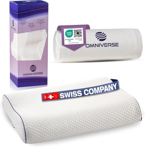 Ongeopend in vacuum, Omniverse, Middelsterk neksteunkussen tegen nekpijn, zijslaapkussen, rugslaperkussen, anti-snurkkussen, traagschuimkussen, ergonomisch hoofdkussen, 55 x 37 x 10/8 cm, wit, B0DZ7XN88P
