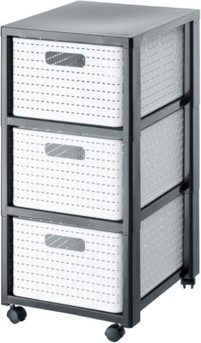 Ongebruikt, volledig, ok, Rotho Country rolhouder met 3 lades in rotanlook, BPA-vrij kunststof (PP), wit, 3 x A4/18L (37,5 x 32,5 x 71 cm),B087XHY87S