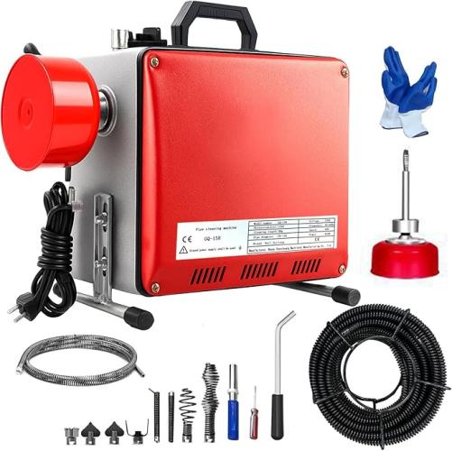 Ongebruikt, getest en werkend, volledig, lichte deuk aan zijkant (zie foto's), Serebrant 850 W buisreinigingsmachine, elektrische buisreinigingsspiraal voor leidingen met een diameter van 20-100 mm, buisreinigingsapparaat met Ø 16 mm, 20 m + Ø 10 mm, 5 m spiralen, 400 omw/m, B0F7QJ3D5W