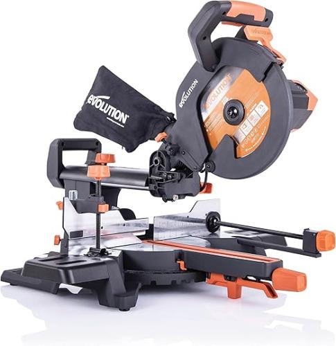 Minieme gebruikssporen, getest en werkend, volledig, ok, Evolution Power Tool R255SMS+ Compound Verstekzaag met Multi-Materiaal Zaagblad, Voor Hout, Metaal en Kunststof, 45° Beitel, 50° Verstekhoek, 300 mm Glijfunctie, 2000 W, 255 mm, 220-240 V, B07J5DFDXM