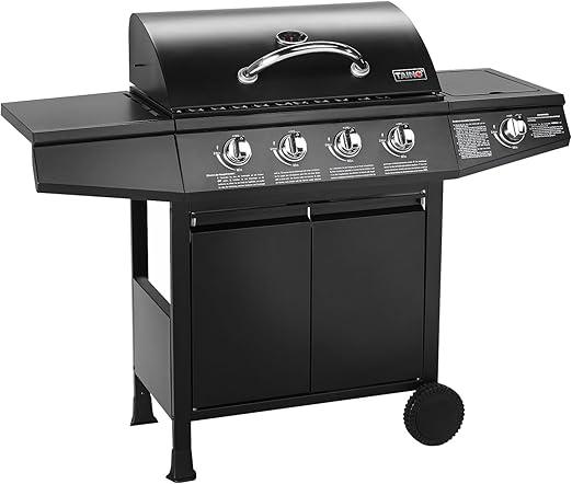 Ongebruikt, volledig, Deuken aan rechter voorkant, rooster geplooid (zie foto's), TAINO Basic 4 + 1 BBQ gasgrill, grillwagen, roestvrij stalen brander + zijbrander, TÜV (BASIC 4+1 gasgrill), B01CIKRLJC