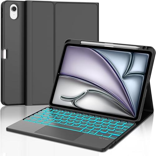 Ongeopend, ok, IVEOPPE toetsenbordhoes met trackpad, zelf aan te passen achtergrondverlichting in 7 kleuren, beschermhoes voor iPad Pro 11 inch M4, afneembaar draadloos AZERTY-toetsenbord, iPad Pro 11 2024, zwart, B0D6G32K9X