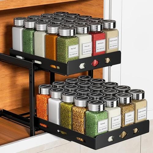 Ongeopend, ok, Kruidenrek voor de keuken, zwarte telescopische lade voor keuken, in hoogte verstelbaar kruidenrek voor kasten, organizer voor uittrekbare kasten, 24,5 cm b x 27,5 cm b x 23,2 cm h, B0CVZVMG7P