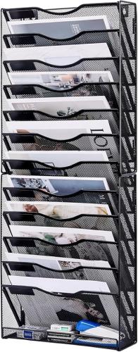 Ongeopend, in seal, Solinxe Wandhouder 12 Tier Bureau Tidy Organiserin Lade Papier Document Magazine Opslag Rack voor Kantoor Thuis School Accessoires Leveringen, Zwart, B0D7PB35SZ