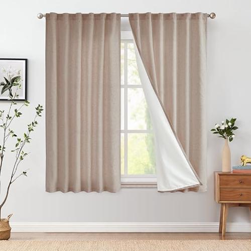 Ongeopend, ok, Vangao Linnen Gordijnen, linnen gordijnen met voering, 140 b x 145 cm (b x h), lengte voor woonkamer, slaapkamer, landhuisstijl, boerderij, modern, lichtfiltering, raamgordijn met verborgen lussen, 2 stuks, B0D2RHV6RB