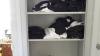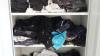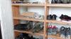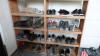 gebruikt werkkledij , samen met houten schoenrek met inhoud