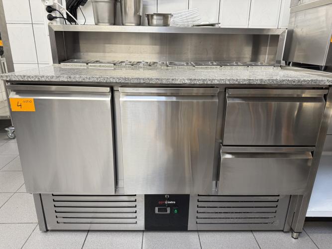 RVS gekoelde werkbank met marmeren blad en saladebar