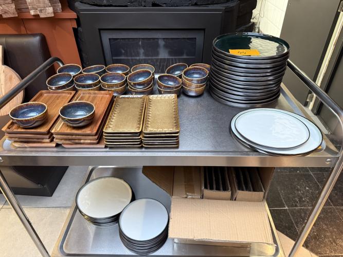 diverse borden, kommetjes, plateaus
