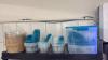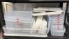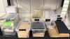 PVC rek met onder meer HACCP voedinglabels, pvc gastrobakken, verpakking, tafelonderleggers, servietten, PVC bakken, etc