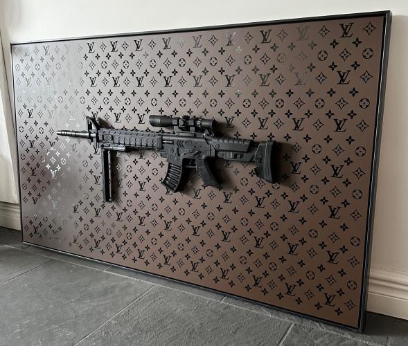 Waardering expert : € 3000 - Ametingen : 120 x 70 cm. - DALUXE ART presenteert met trots het verbluffende kunstwerk "Louis Vuitton XXL Gun". Dit meesterwerk is gemaakt met het iconische Louis Vuitton-monogram, dat schitterend contrasteert met de matte bruine achtergrond en de glanzende zwarte monogramdetails. Een opvallend en uniek detail van dit kunstwerk is de aanwezigheid van een prachtig vormgegeven 3D-gun. Elk exemplaar van dit kunstwerk is met de hand gesigneerd en wordt geleverd met een certificaat van echtheid, waardoor het een waardevolle aanvulling is op uw kunstcollectie. Laat u betoveren door de harmonie tussen luxe, kunst en stijl met de "Louis Vuitton XXL Gun" van DALUXE ART. Daluxe Art, een kunstenaar geboren in 1999, is vooral geïnspireerd door pop-art en werkt graag met gemengde technieken. Zijn kunstwerken zijn uniek en brengen een krachtige boodschap over. Hij geniet van het creëren van kunst met de hand en houdt van uitdagingen. Met zijn werk streeft hij ernaar om een emotionele reactie bij de toeschouwer op te roepen. Daluxe Art blijft zich artistiek ontwikkelen en zoekt voortdurend nieuwe manieren om te groeien. Met certificaat en COA.