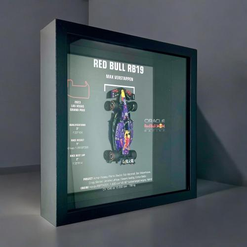 Een waardevol stuk voor echte kenners en motorsportfanaten. Uitstekend als cadeau of voor verzamelaars, kan aan de muur worden gehangen of op een plank worden geplaatst. Gedetailleerde miniatuur op schaal 1/43 van de RED BULL RB19. Gelamineerd in plexiglas en omsloten door elegant gehard glas voor een unieke uitstraling. Een lust voor het oog. Dankzij deze unieke editie haalt u een stukje Formule 1-geschiedenis in huis. Exclusieve uitvoering ter ere van de magnifieke overwinning van de LAS VEGAS GRAND PRIX door MAX VERSTAPPEN. Gesigneerd en uitgevoerd in beperkte oplage door XRACE en handgesigneerd.