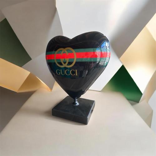 Waardering expert : € 800 - Een high-end interieurobject van het gerenommeerde Nederlandse kunsthuis Cobra Art - Komt met certificaat en COA - Dit sculptuur combineert de speelse vorm van een ballon-hart met de allure van haute couture - De strakke, hoogglans afwerking en het iconische patroon (een artistieke knipoog naar het Gucci-design) maken dit tot een luxe statement piece dat direct sfeer brengt in een modern interieur - Het kunstwerk "The Balloon Heart Gucci tribute" is in een speciale editie uitgegeven door Cobra Art Amsterdam, gevestigd vlakbij het Rijksmuseum en het Van Gogh Museum - Afmetingen 27 x 33 x 15 cm.