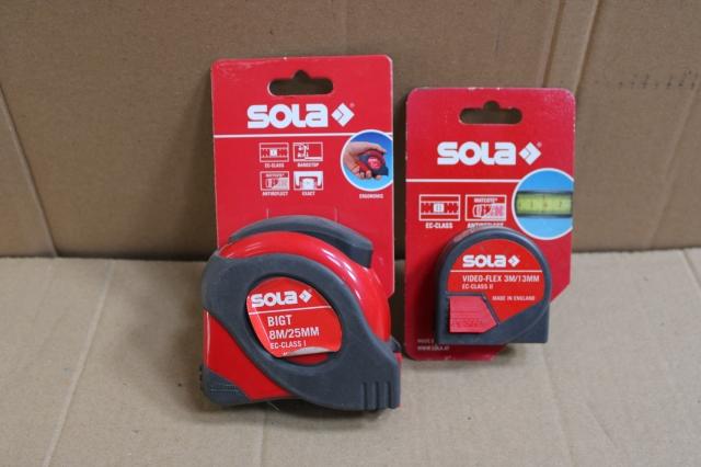 Ongebruikt, 2 x Sola meter, 1x Sola video-flex 13mm VF3 (021250435) + Sola rolmeter type Big T 8M (021250015)