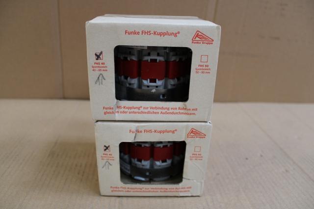 Ongebruikt, 2 x FHS-buiskoppeling – 40mm tot 65mm – max reductie:25mm
