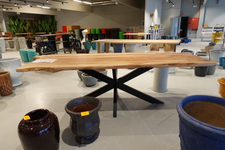 oude teak, vv: metalen spiderpoot, 2400x1000x800