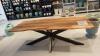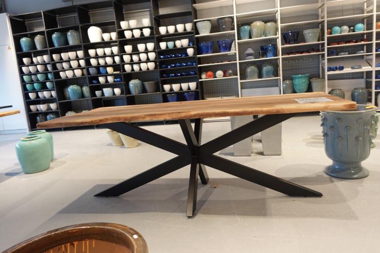 oude teak, vv: metalen spiderpoot, 2200x950x800