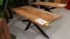 oude teak, vv: metalen spiderpoot, 2200x950x800