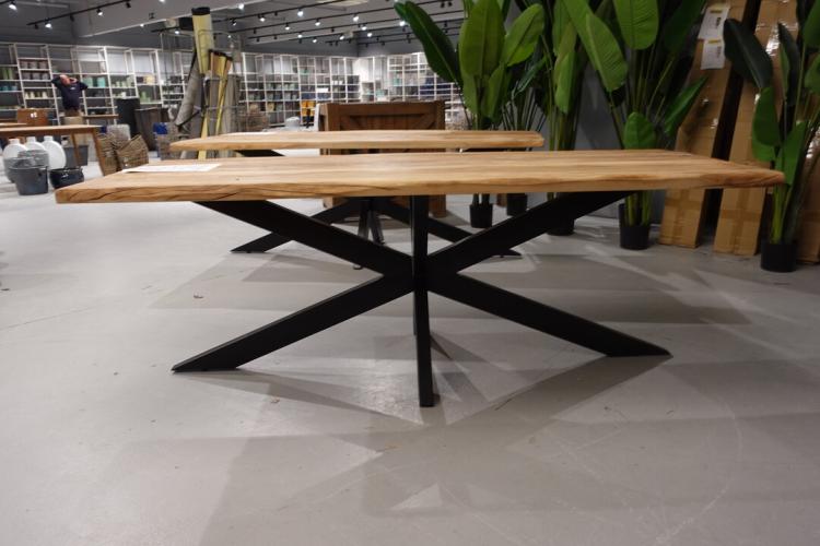 oude teak, vv: metalen spiderpoot, 2200x950x800
