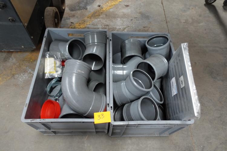 2x pvc box met diverse afvoerbochten en hulpstukken