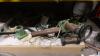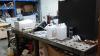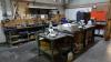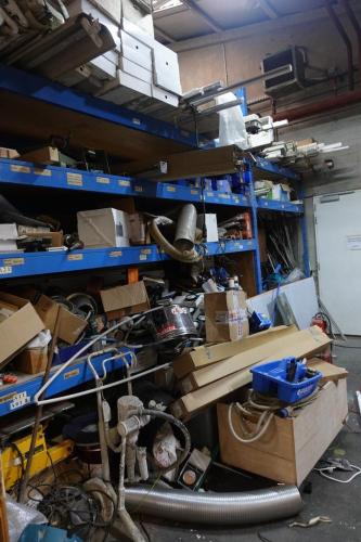 grote partij onderdelen, ijzerwaren, ... + werkbanken, lastafel, (exclusief rekken en lot 678 + 679) ALLES MOET MEE!!!