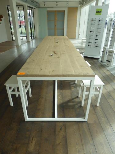 Metalen tafel met houten blad