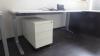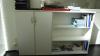 3 x bureautafel waarvan 1 in hoogteverstelbaar, 1600x800 1800x800 1600x800, dossierkast + inhoud