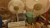 Ladder, 2x ventilator, 3x schoren, 1x verwarming, 2x trilnaald na te zien ! bureau met stoel ( Alles moet mee ! )