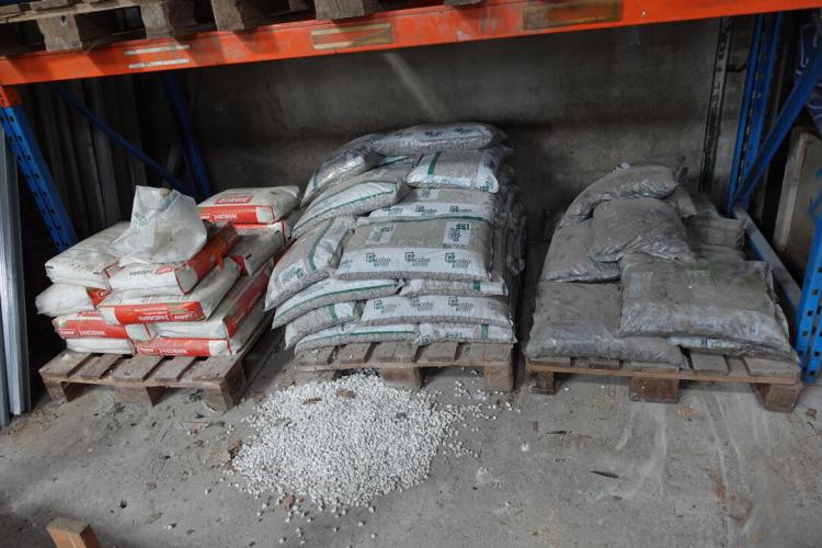 Bluestone 20>40mm plm 16 zakken, Kalksteenslag 6,3>14 mm plm 25 zakken, Diamur 248dbmk plm 17 zakken