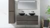 Badkamermeubel 130 cm - Donker hout decor + zwarte waskommen - Incl. muurkranen