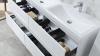 Badkamermeubel 145 cm - Hoogglans wit + witte dubbele wasbak - Incl. kranen