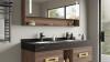 Badkamermeubel 2-persoons - 150 cm - Hout decor met zwarte marmeren wasbak - Incl. kranen