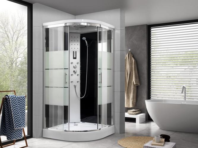Douchecabine halfrond - witte bodemplaat met zilverkleurig frame 90x90x215 cm