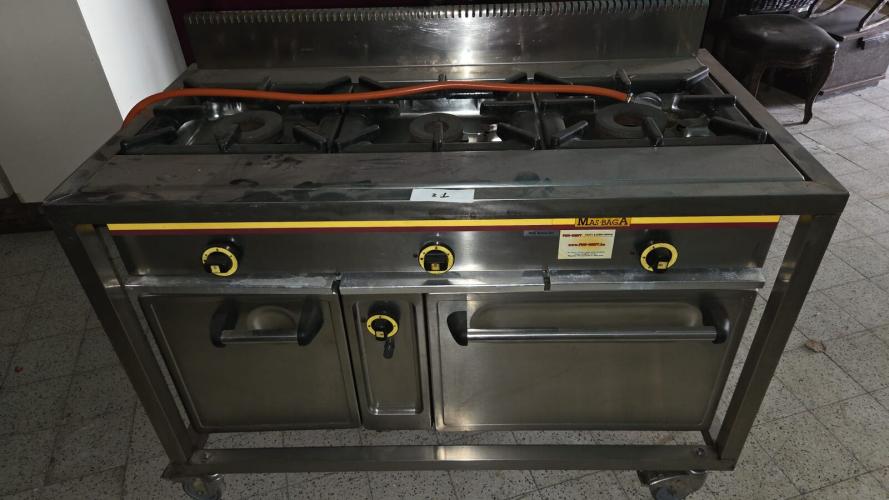 Mas Baga gasoven met 3 bekken fornuis. Op propaan. In inox kader en wielen130cmx70cm