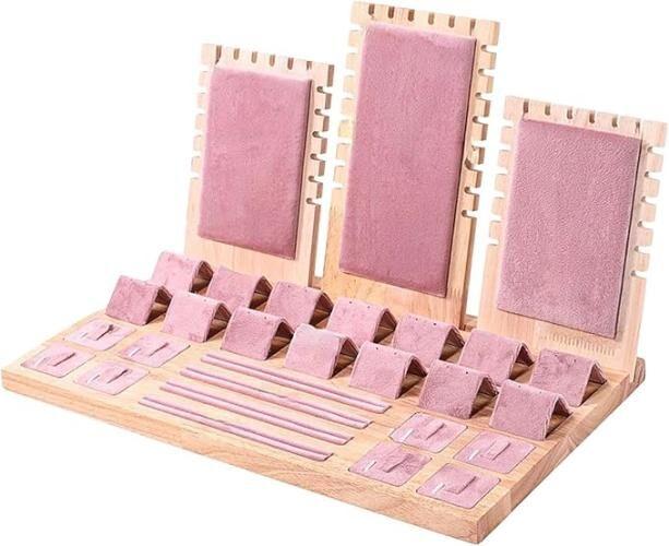 Ongeopend, Milageto Sieraden opbergdienblad, halskettingen display standaard, hout roze organizer, B0C5WKB81P